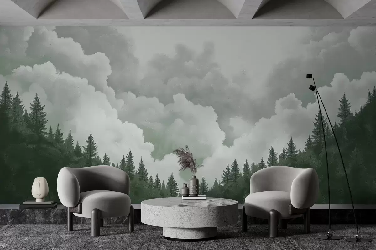 Fototapetai Aliejiniais dažais nutapyti tiršti debesys virš miško Nr. w02411v2