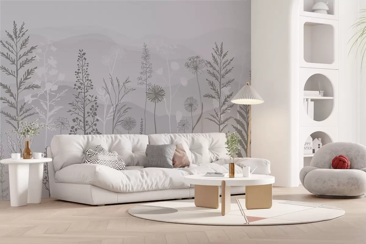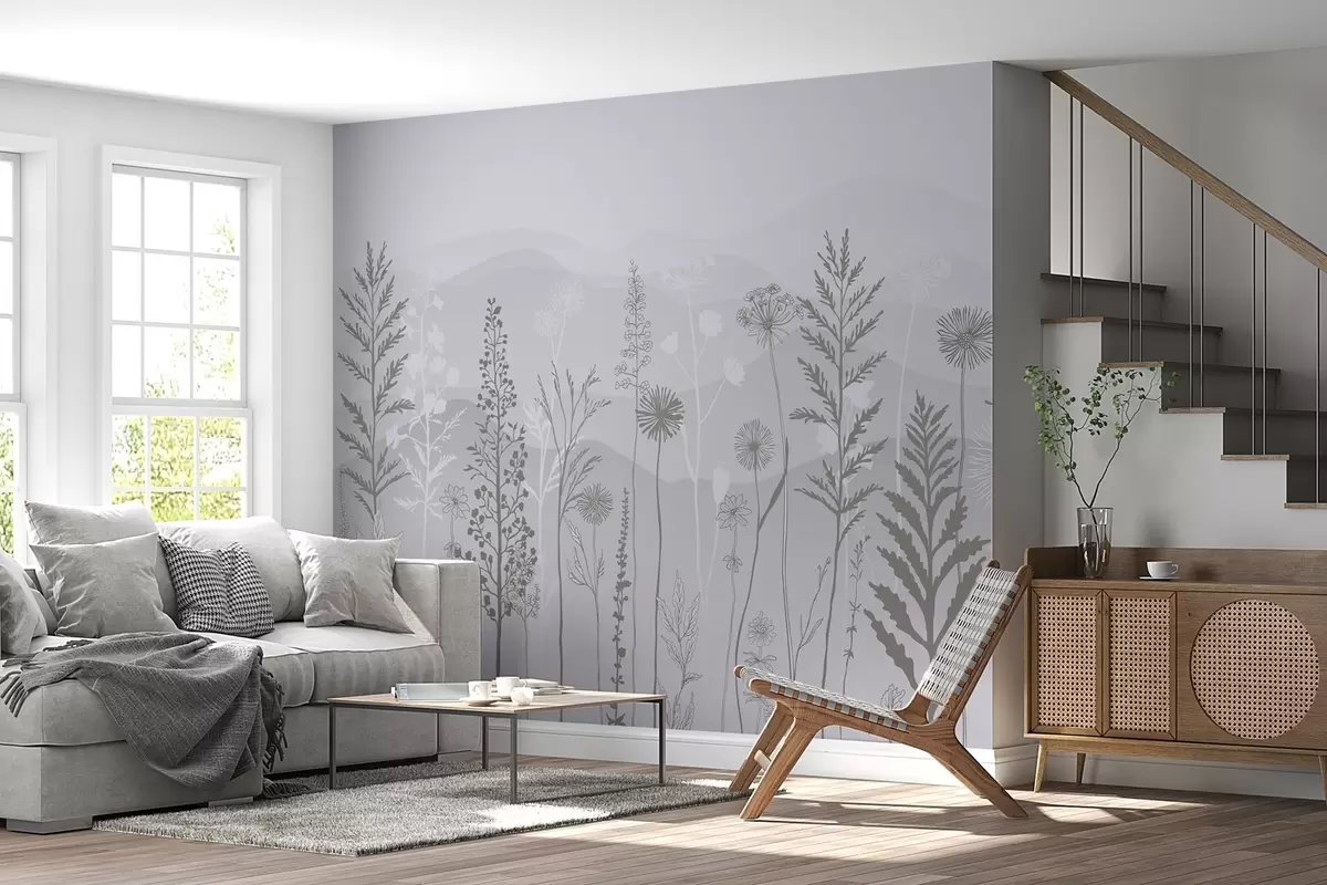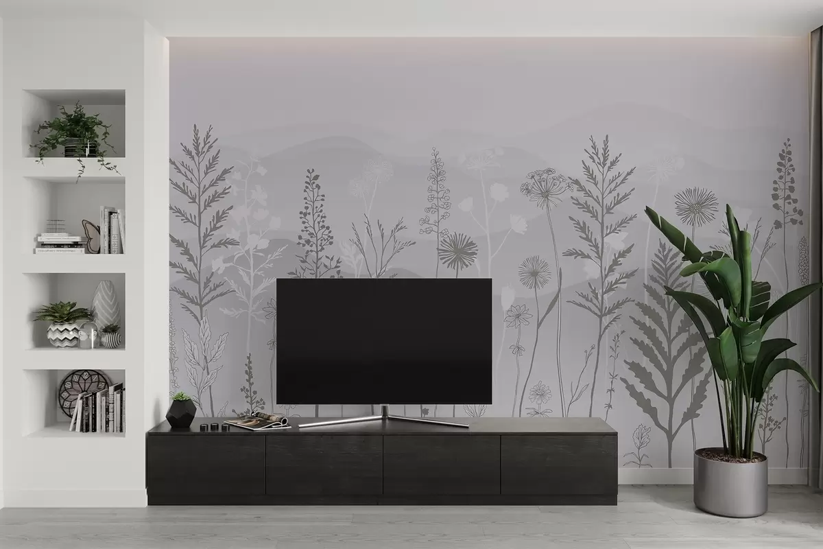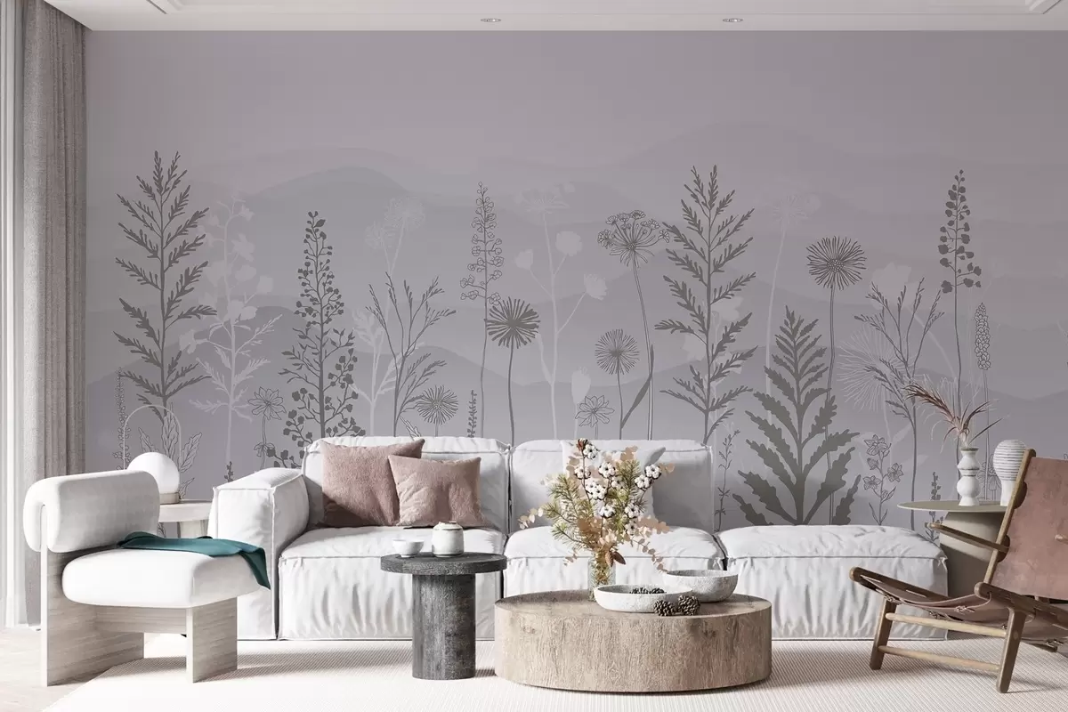 Fototapetai ekologiško stiliaus tapetai, laukinės gėlės pilkais tonais Nr. w02443