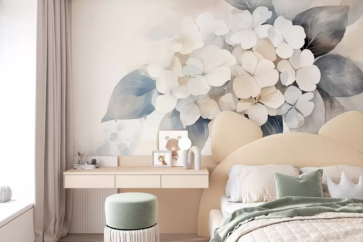 Fototapetai Hortenzijos gėlė, švelnios spalvos, akvarelės stilius Nr. w02491