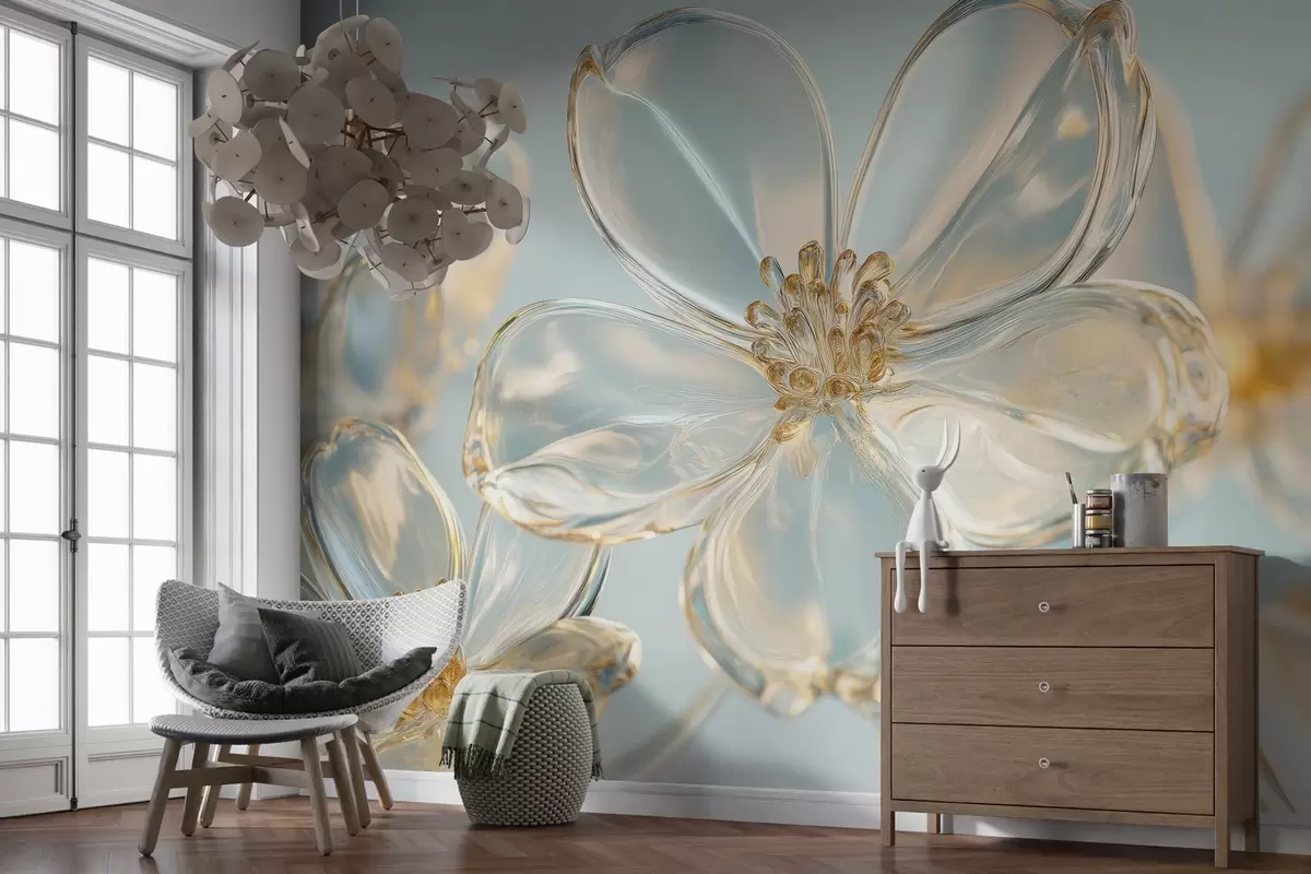 Fototapetai didelės stiklinės mėlynos spalvos gėlės Nr. w02521