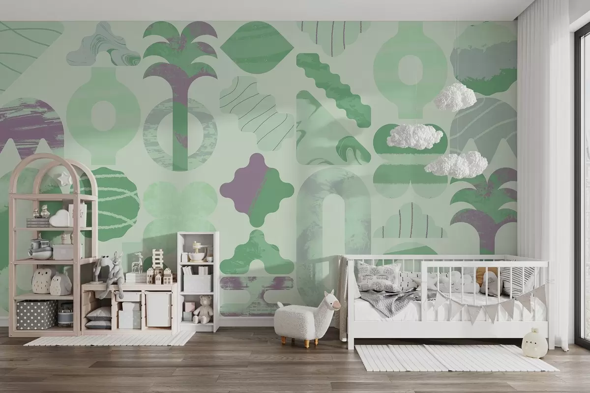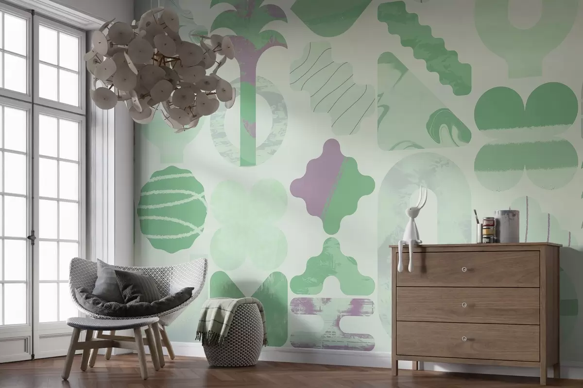 Fototapetai įvairios įdomios formos, šiuolaikinė geometrija žaliomis spalvomis Nr. w02550v2