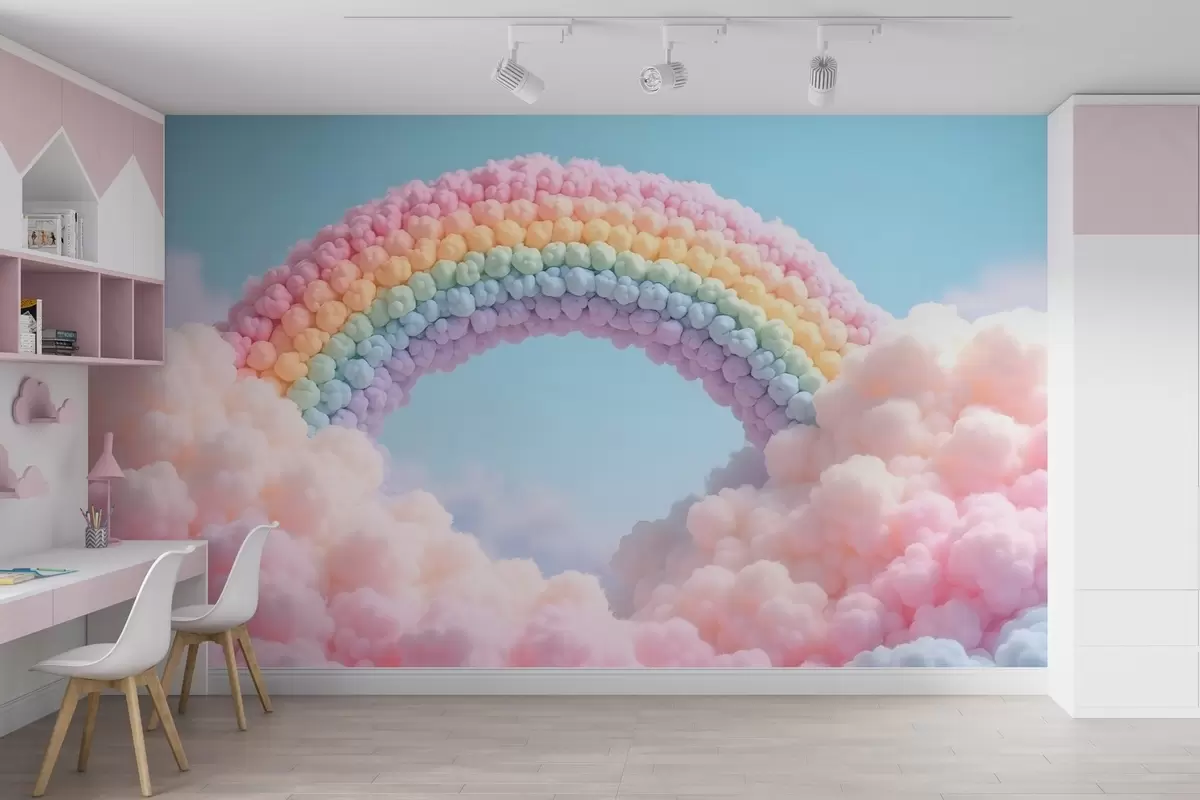 Fototapetai Pūkuota vaivorykštė ant debesų, nutapyta Nr. w02615