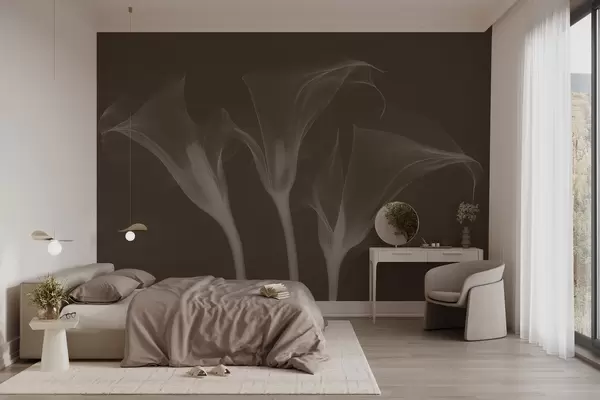 Fototapetai erdvios skaidrios Zantedeschia gėlės tamsiame fone Nr. w02632v1