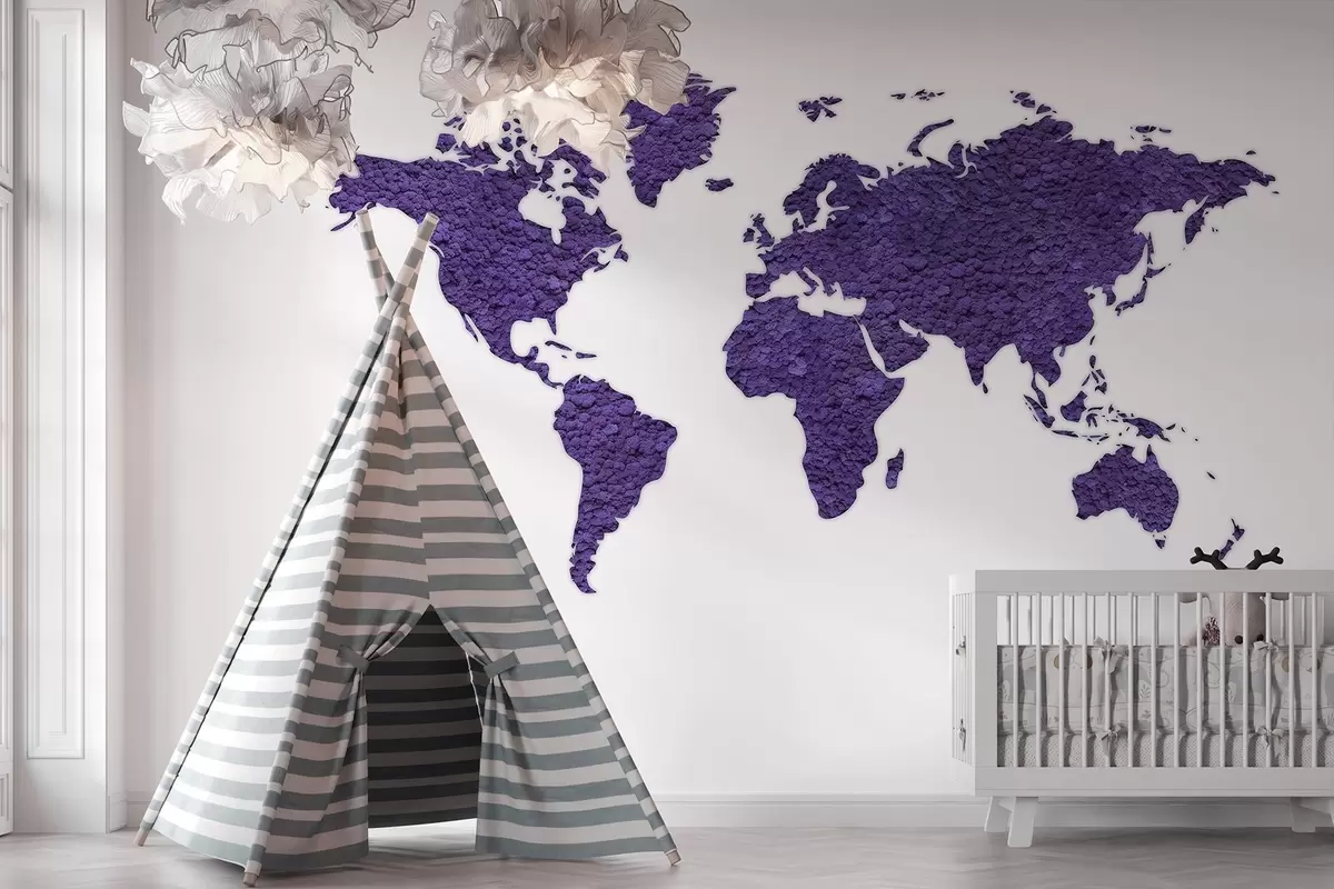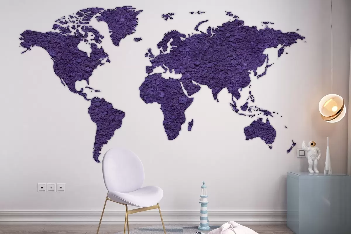 Fototapetai Pasaulio žemėlapis su samanomis, gamta, violetinė spalvų paletė Nr. w02657v3