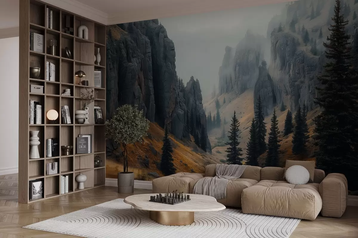 Fototapetai mistinis kraštovaizdis su akmenimis ir eglėmis Nr. w02682