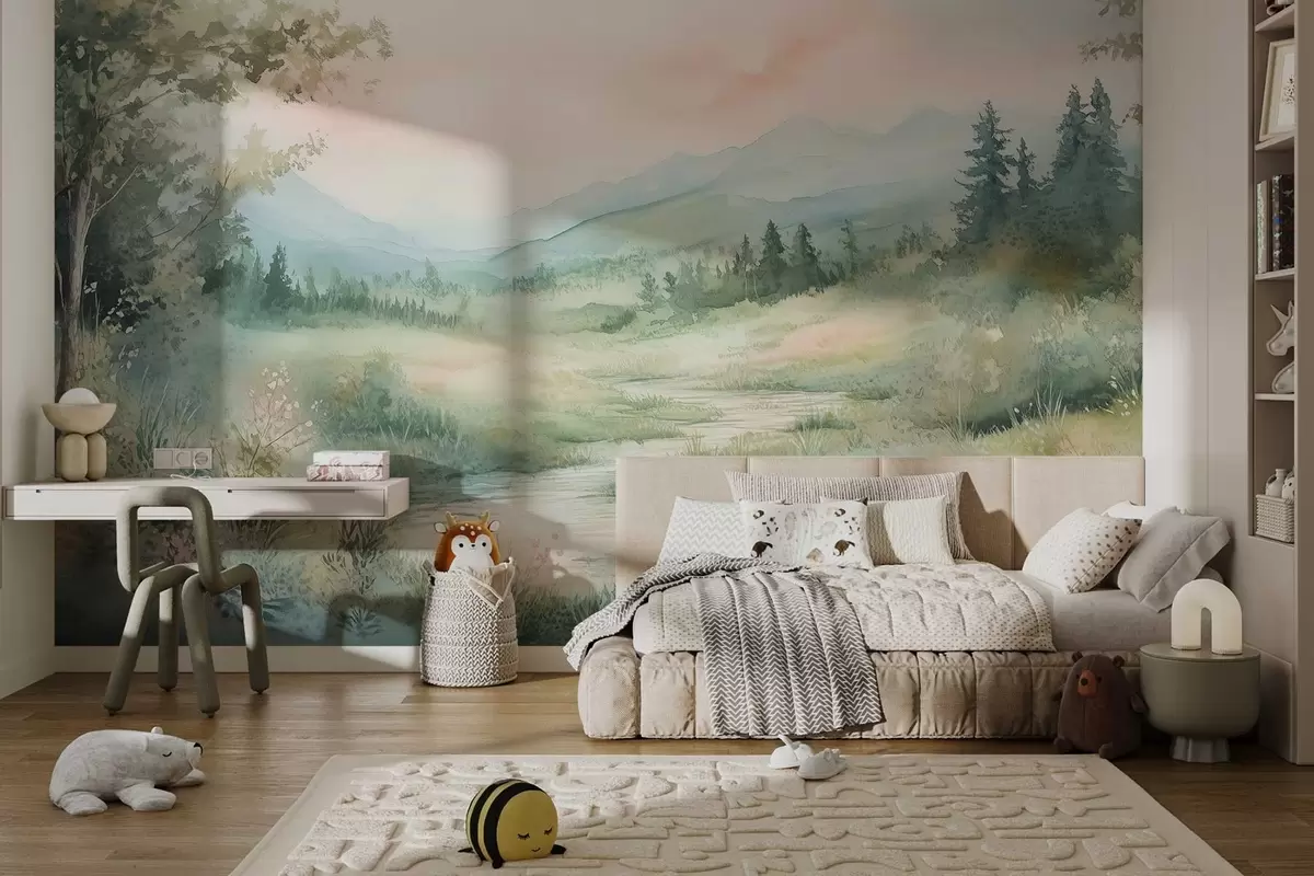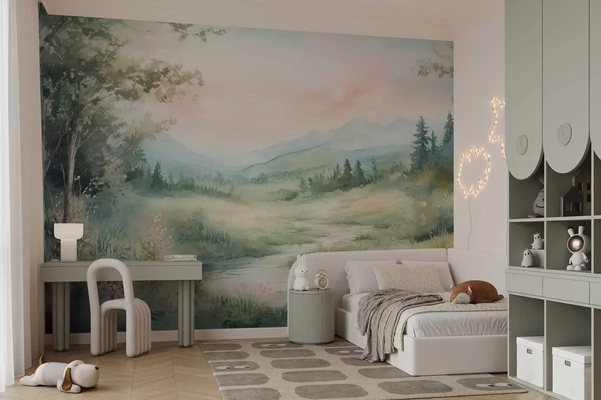 Fototapetai akvarelinis peizažas su keliu ir kalnais Nr. w02764