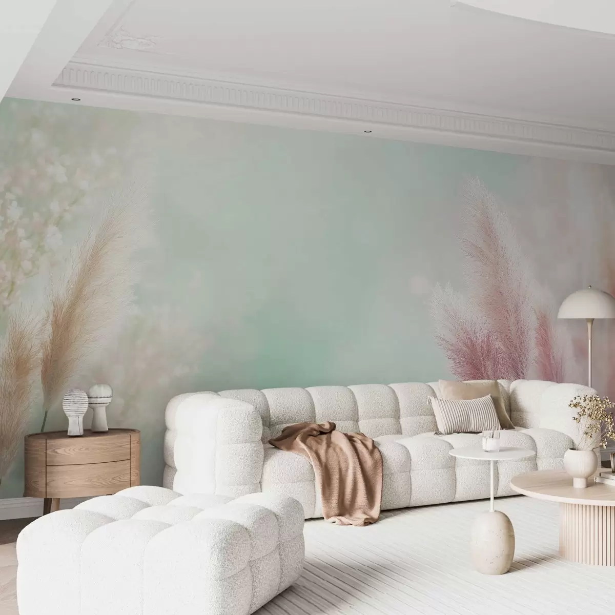 Fototapetai pampų žolė švelniame turkio spalvos fone Nr. w02766
