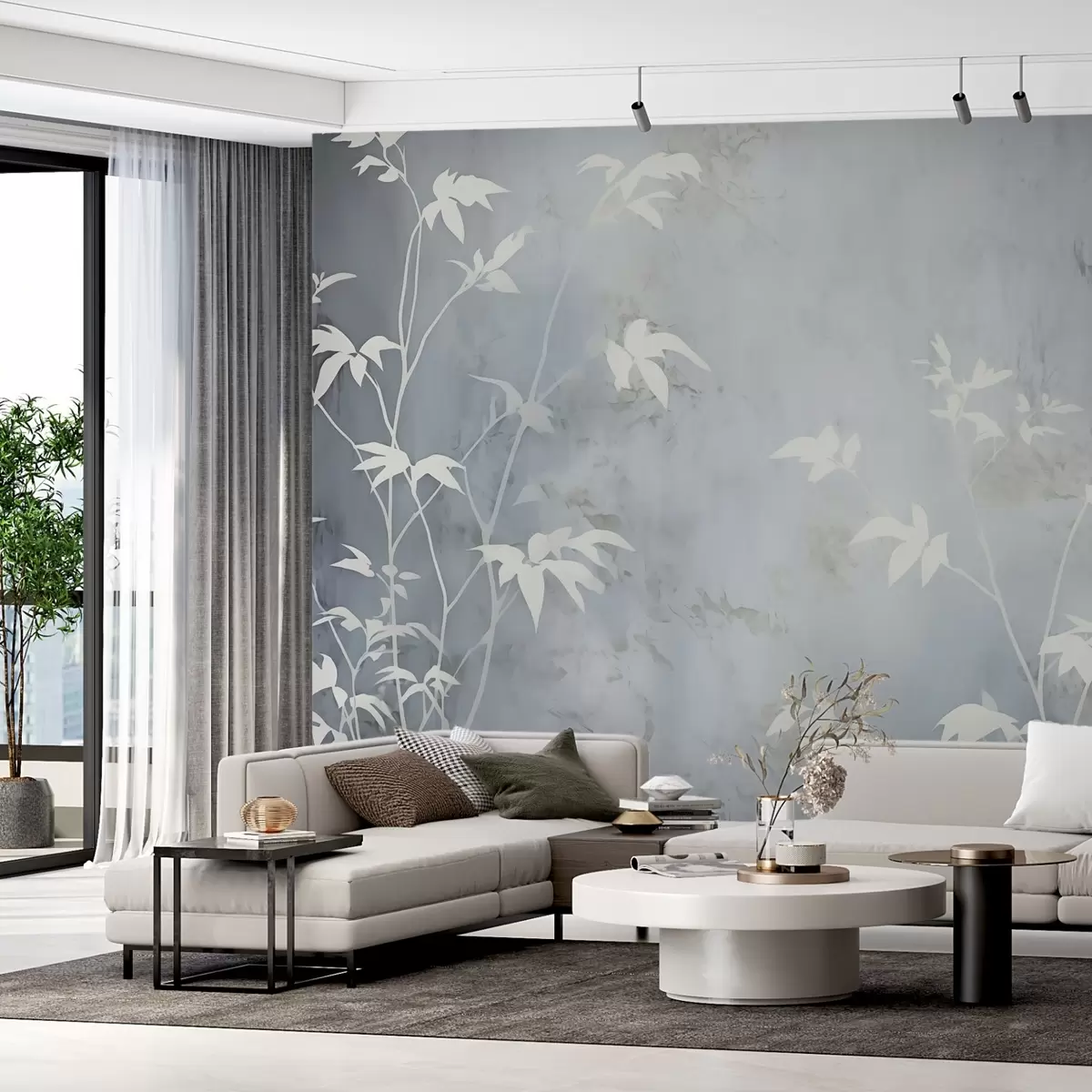Fototapetai Balti augmenijos siluetai faktūriniame dėmėtame fone Nr. w02792