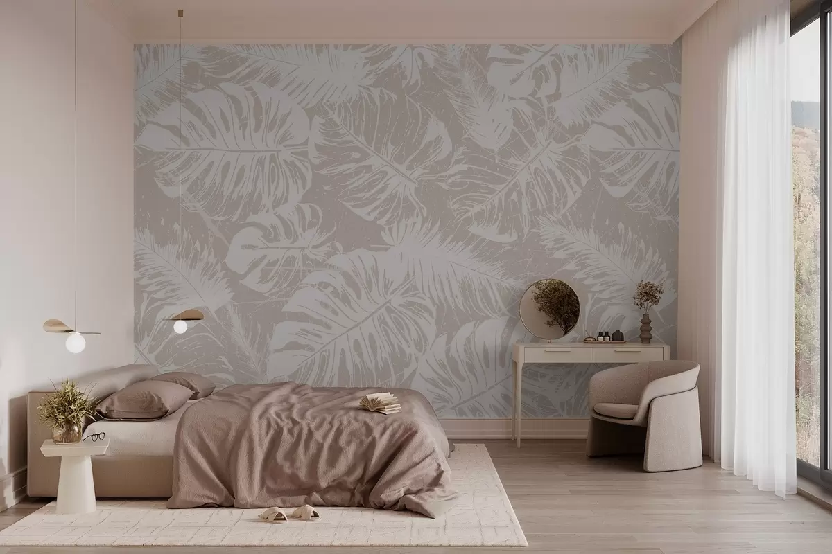 Fototapetai Balti lapų siluetai tekstūriniame fone Nr. w02895v1