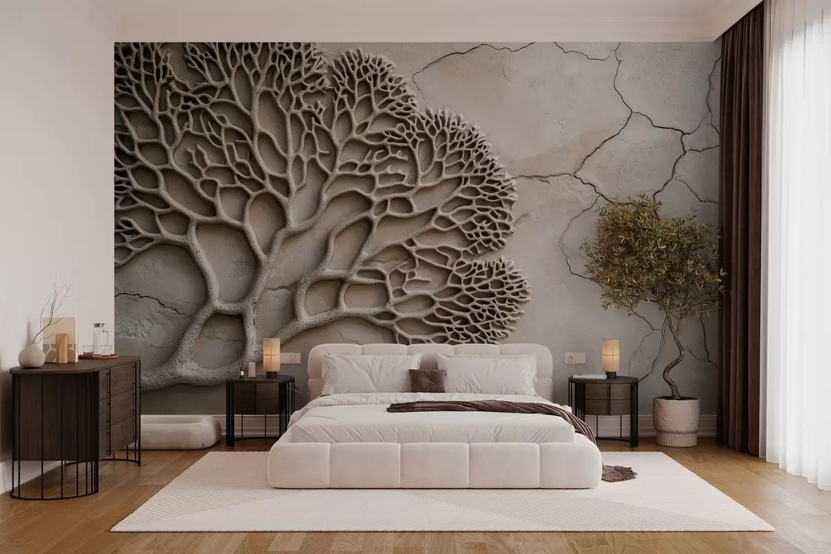 Fototapetai Tapetai reljefiniu stiliumi su medžiu ir įtrūkimais Nr. w02908