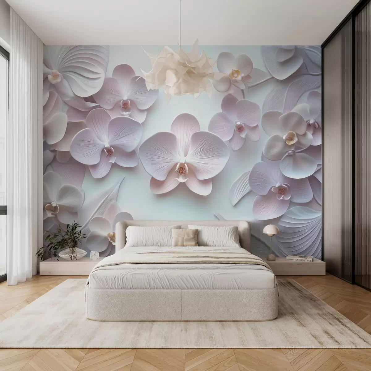 Fototapetai Švelnios archidijų gėlės šviesiomis spalvomis su 3D imitacija Nr. w02912
