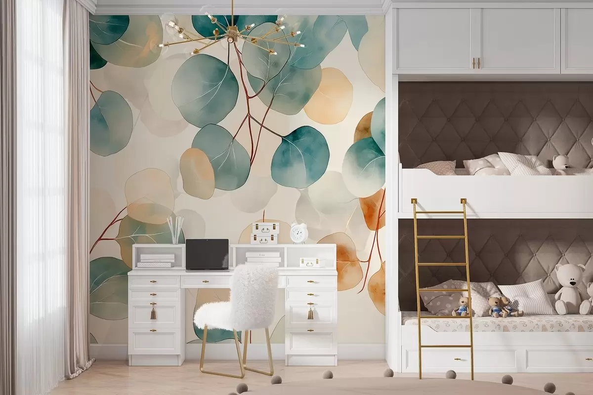 Fototapetai Akvarelės stiliaus eukaliptų piešinys, minkštos pastelinės spalvos, gėlių Nr. w02938