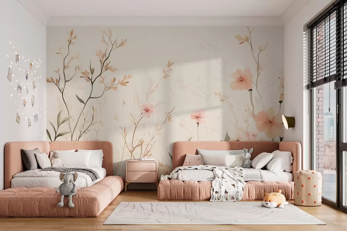 Fototapetai laukinės gėlės su persikų žiedais Nr. w03009