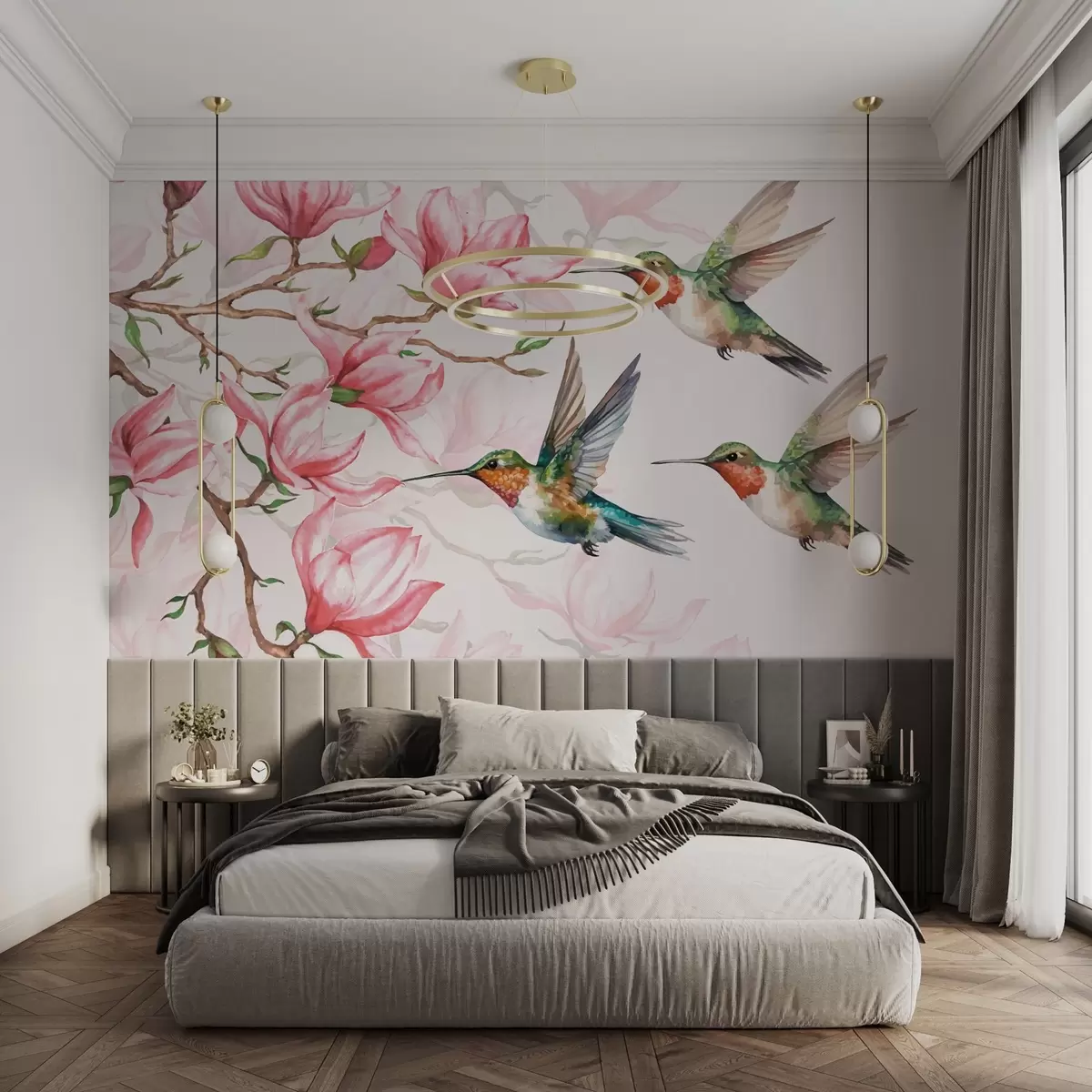 Fototapetai Žydinčios magnolijos ir kolibriai Nr. w03104