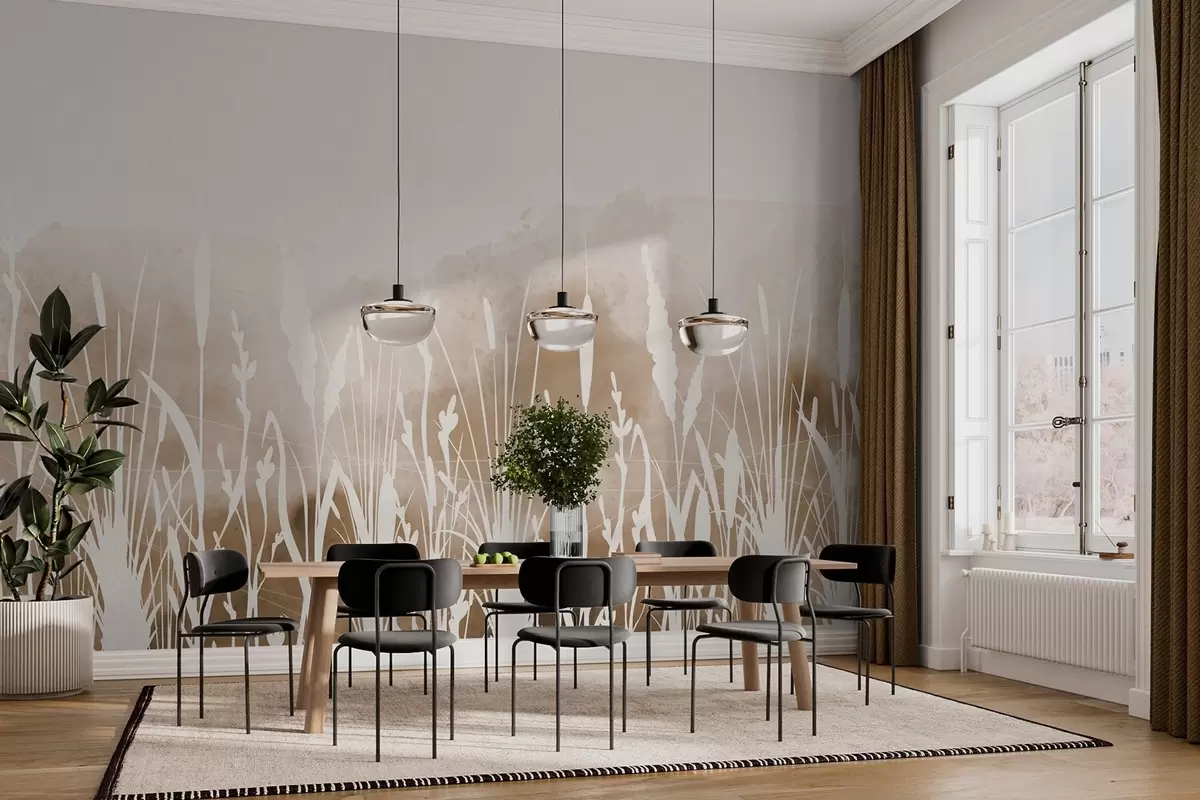 Fototapetai Pievų augalų siluetai šviesiame fone Nr. w03134
