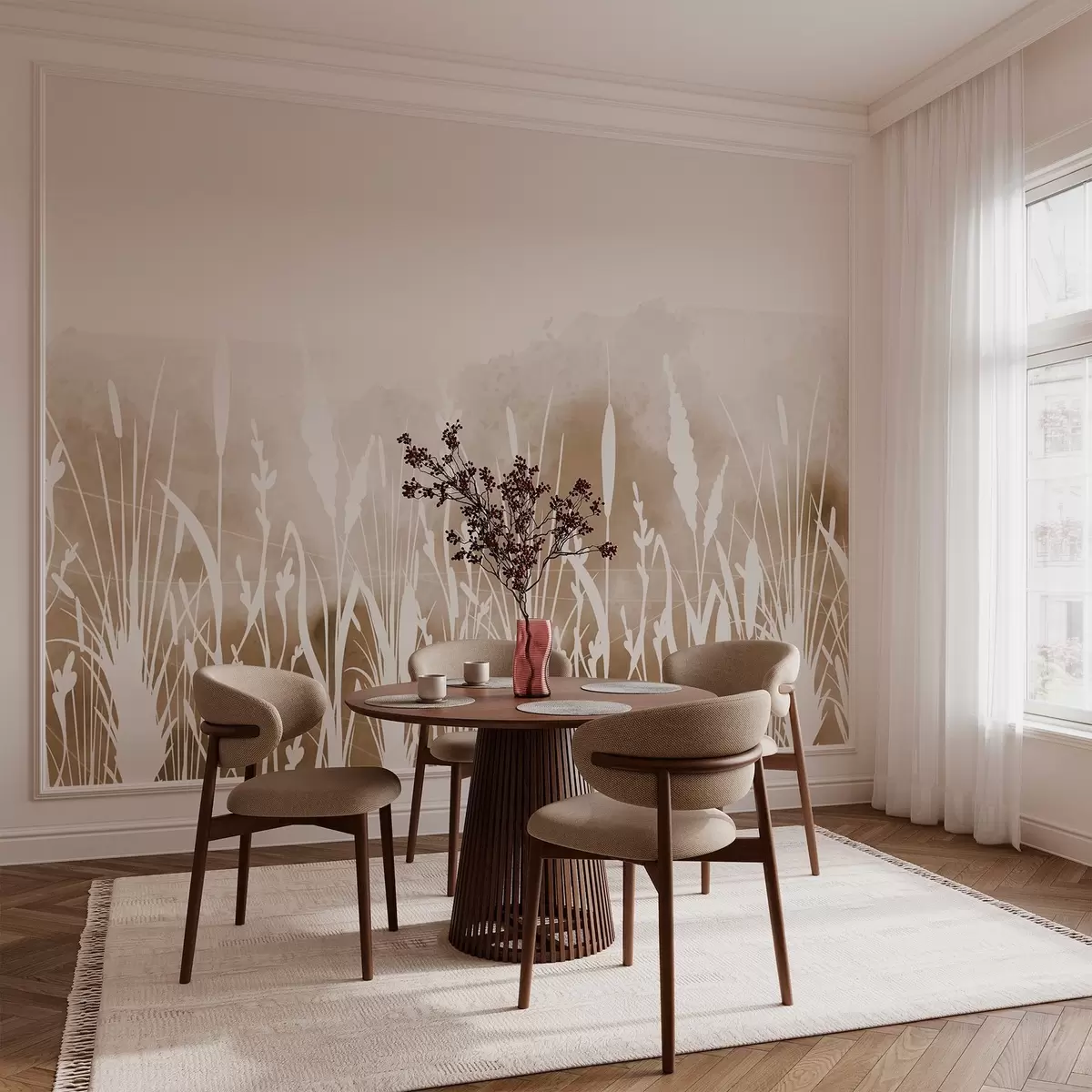 Fototapetai Pievų augalų siluetai šviesiame fone Nr. w03134