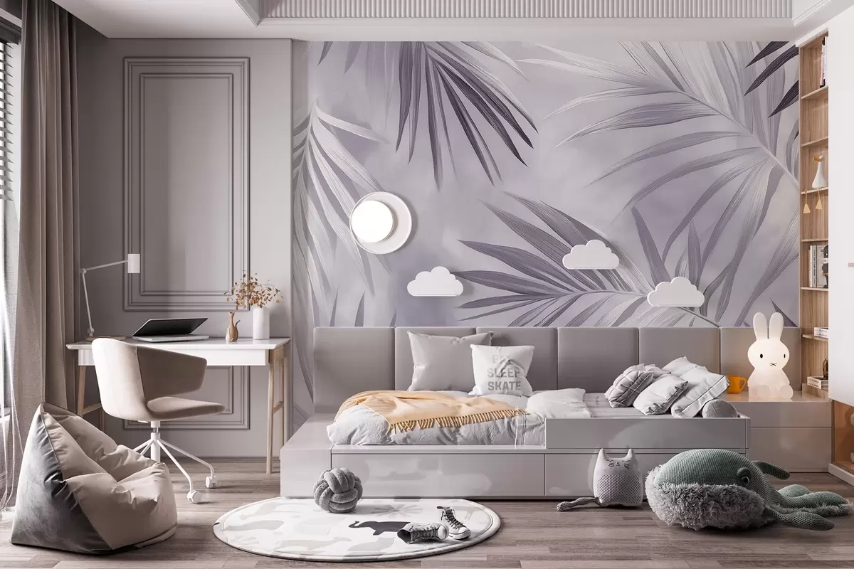 Fototapetai Atogrąžų lapų abstrakcija, palmė, violetinė spalvų paletė Nr. w03153v1