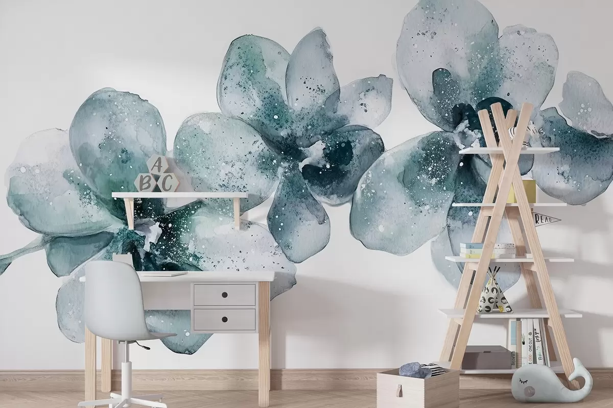 Fototapetai Akvarelės stiliaus orchidėjų gėlės, akvamarino spalvos Nr. w03163v1