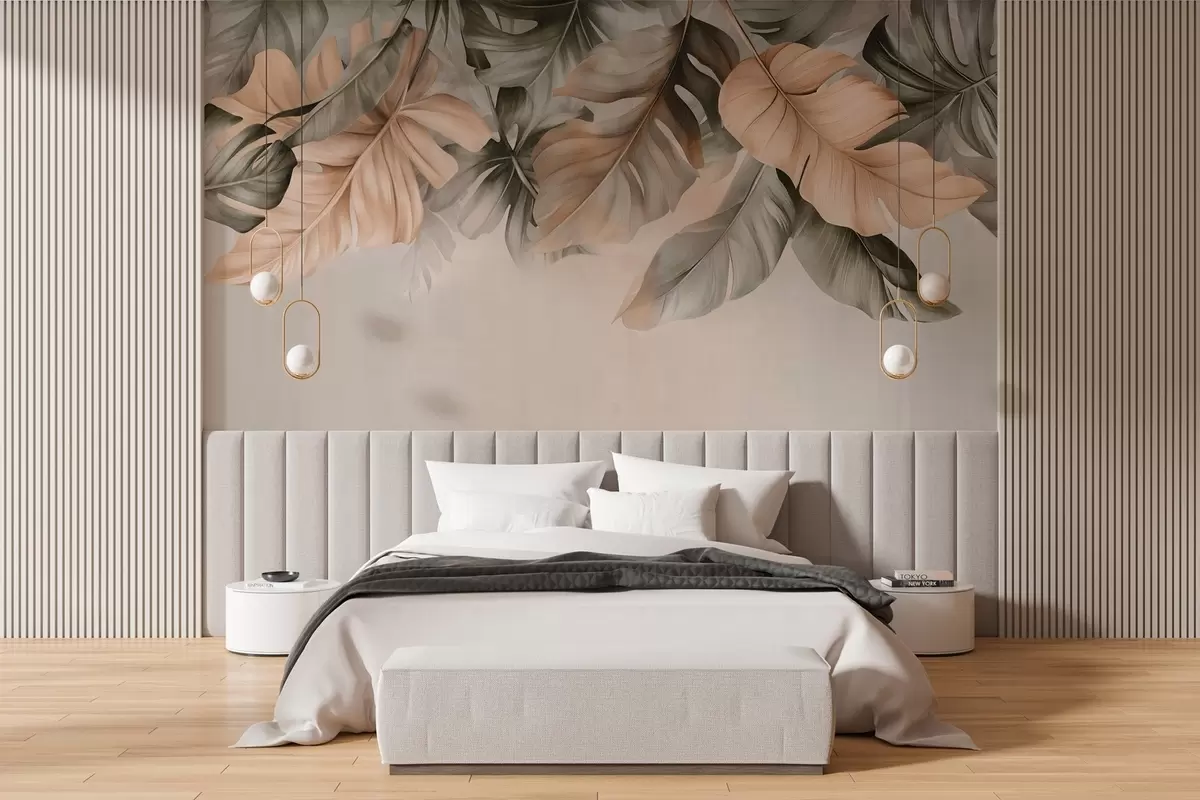 Fototapetai Viršuje kabantys atogrąžų lapai faktūriniame fone Nr. w03290