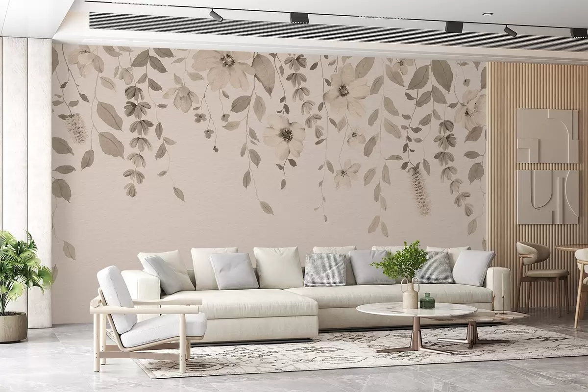 Fototapetai Pakabinamos akvarelinės gėlės ir lapai Nr. w03315v4