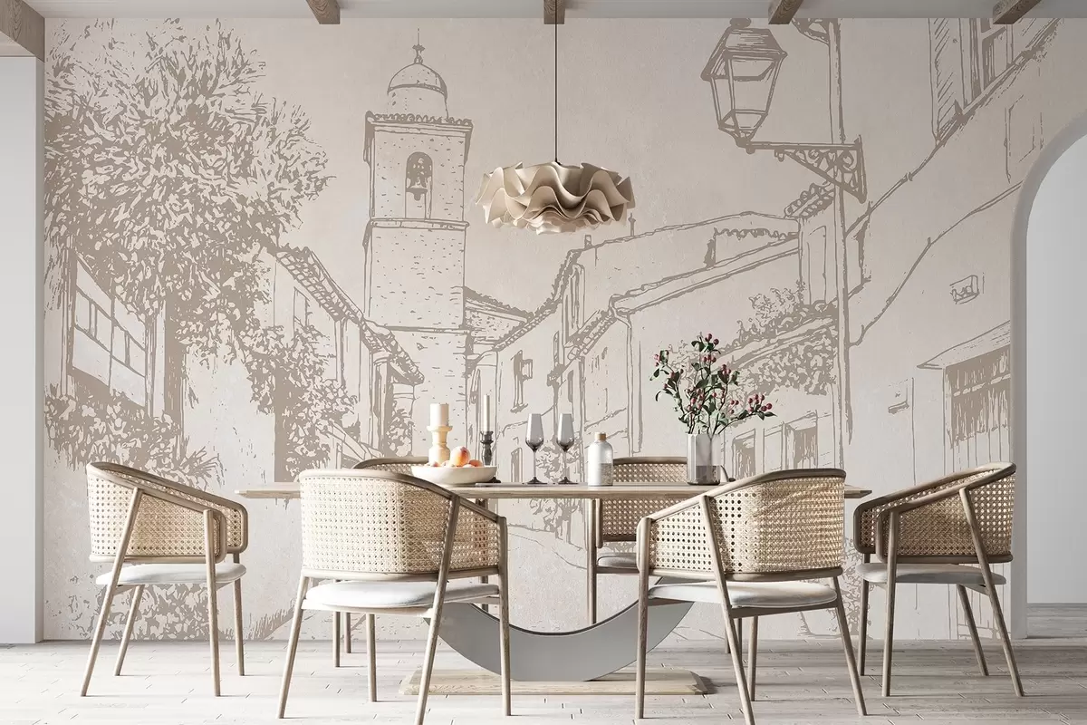 Fototapetai Miesto gatvė, graži architektūra, pastatai, Viduržemio jūros regiono, smėlio spalvos Nr. w03346