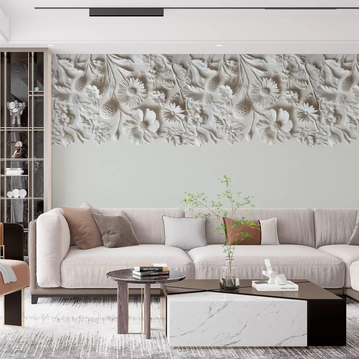 Fototapetai Pieno spalvos bareljefinių gėlių imitacija viršuje Nr. w03398v1
