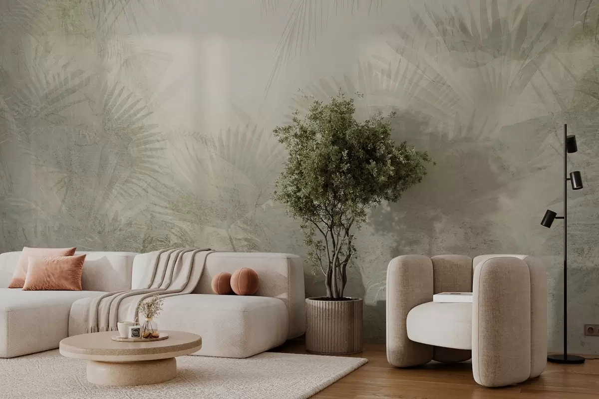 Fototapetai Tekstūruoti atogrąžų retro tapetai smėlio spalvos tonais Nr. w03399