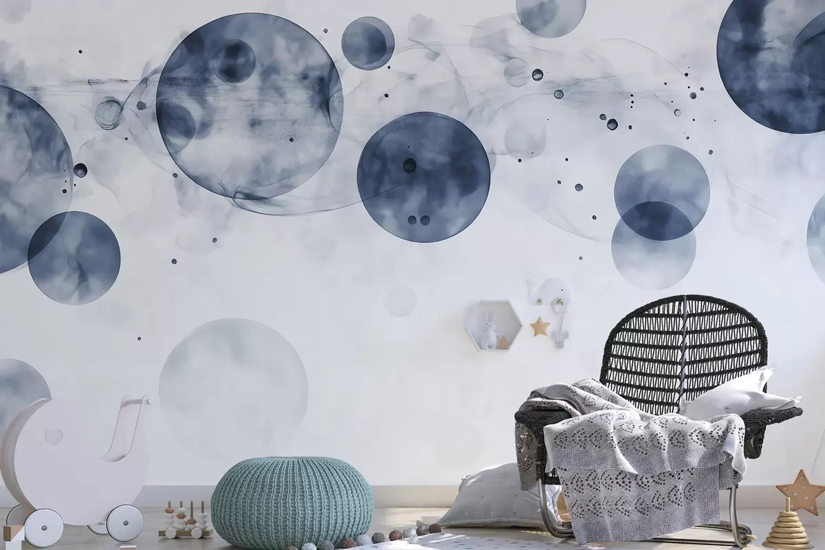 Fototapetai Akvarelės stiliaus apskritimai, abstrakcija, eterinis, skysčių menas, pilkos spalvos Nr. w03405