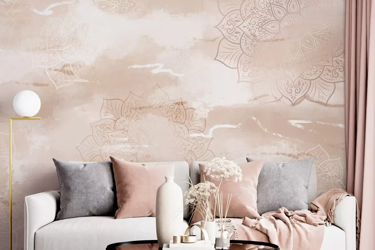 Fototapetai Mandalos pasteliniame fone, ryškūs teptuko potėpiai, smėlio spalvos Nr. w03409