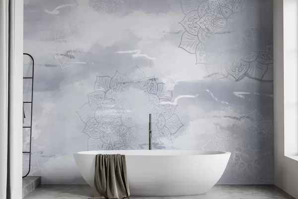 Fototapetai Mandalos pasteliniame fone, ryškūs teptuko potėpiai, mėlynos spalvos Nr. w03409v1