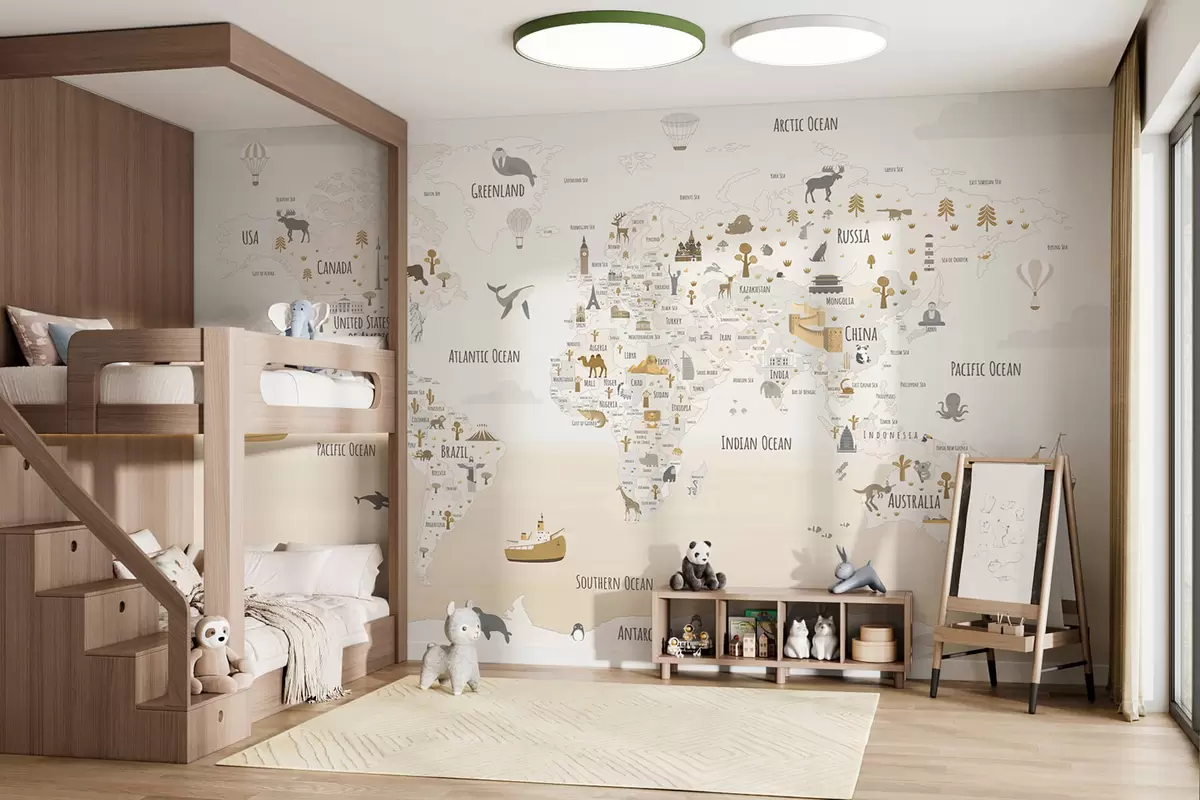 Fototapetai Pasaulio žemėlapis su gyvūnais ir orientyrais Nr. w03410v1