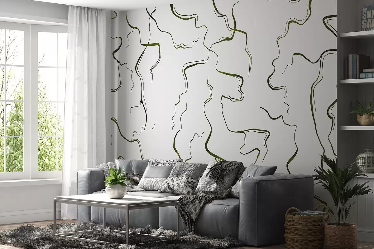 Fototapetai Geometrinės linijos, rašalo stilius, abstrakcija, žalios spalvos Nr. w03436