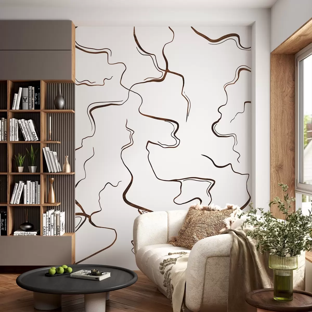 Fototapetai Geometrinės linijos, rašalo stilius, abstrakcija, rudos spalvos Nr. w03436v1