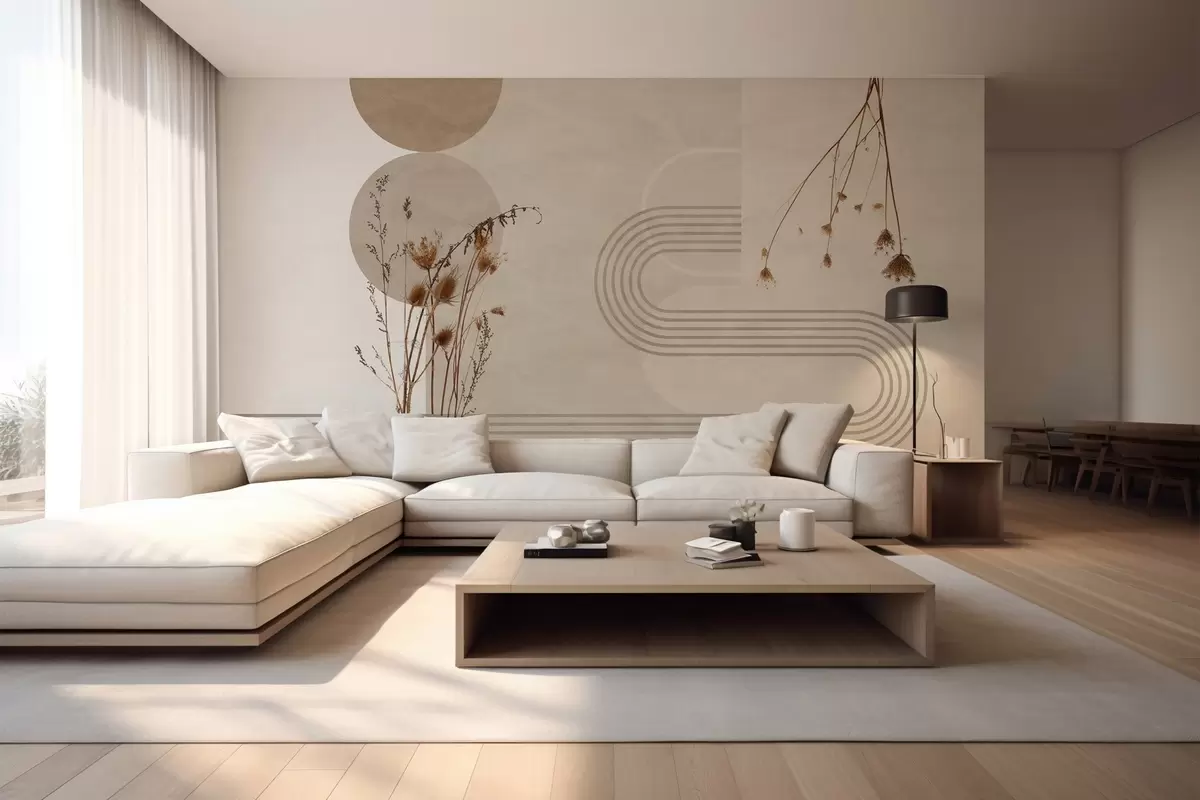 Fototapetai stilinga geometrija ir džiovintos gėlės smėlio spalvos Nr. w03449
