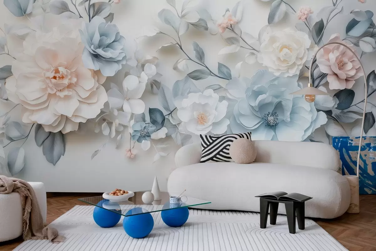 Fototapetai subtilios erdvios gėlės, turinčios aliejinės tapybos stiliaus apimties efektą Nr. w03457