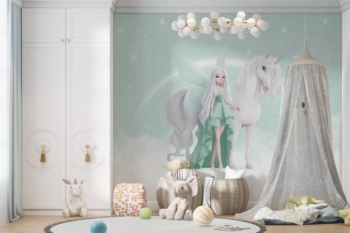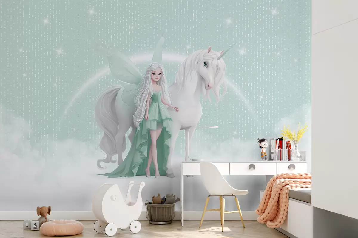 Fototapetai Fėja su vienaragiu tarp debesų Nr. w03527v2