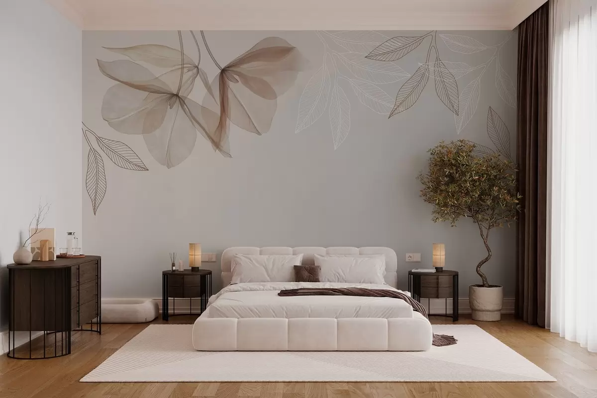 Fototapetai švelnios permatomos moka atspalvių gėlės ir lapai Nr. w03616v3