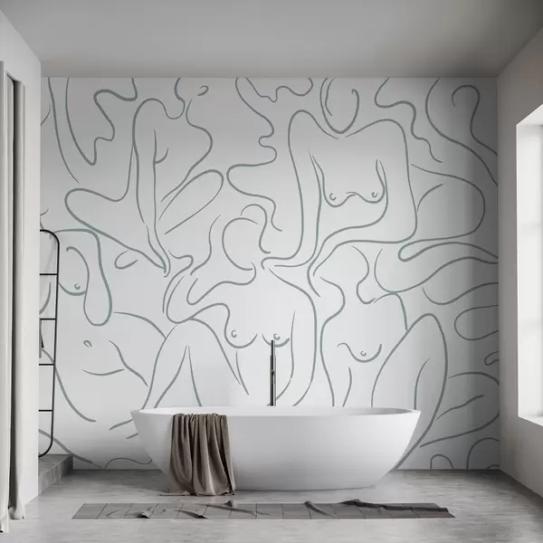 Fototapetai Linijinis piešinys anatominiai siluetai, abstrakcija, mėlyna spalva Nr. w03755v1