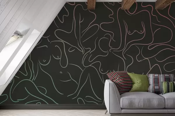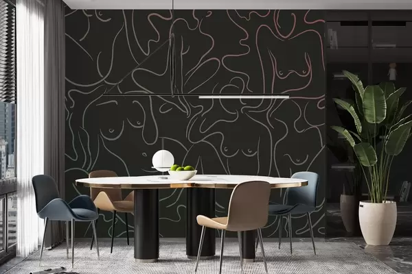 Fototapetai Linijinis piešinys, anatominiai siluetai, abstrakcija, tamsus fonas Nr. w03755v2