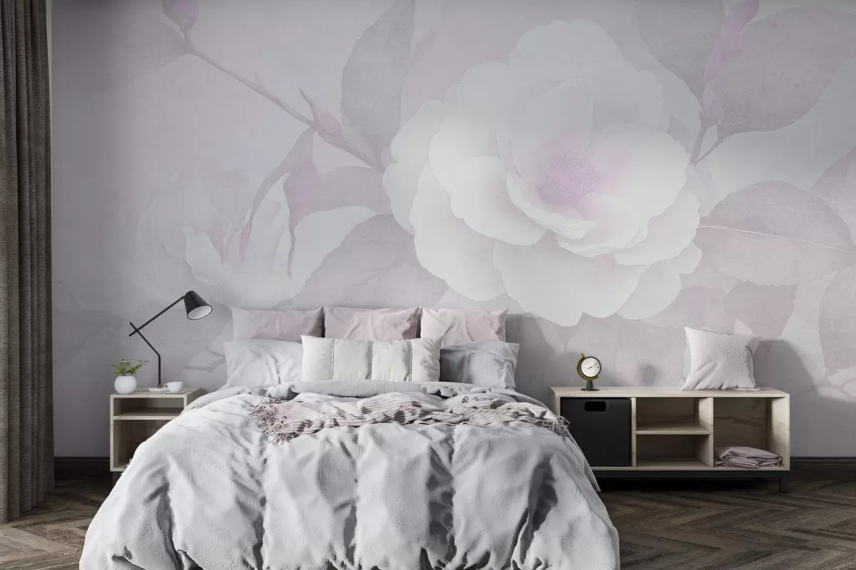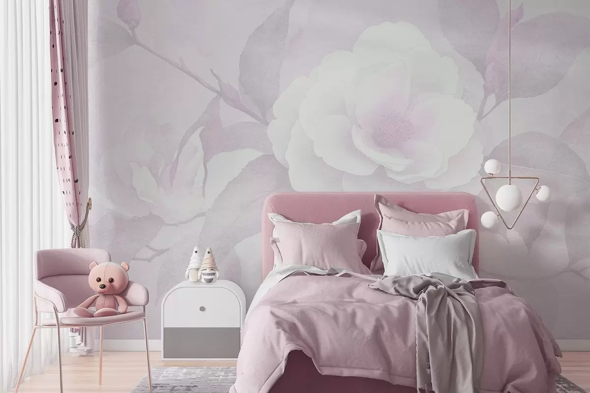 Fototapetai Minkšta pastelinė spalva su kamelijų žiedais ant šakos, rožinės spalvos Nr. w03760v2