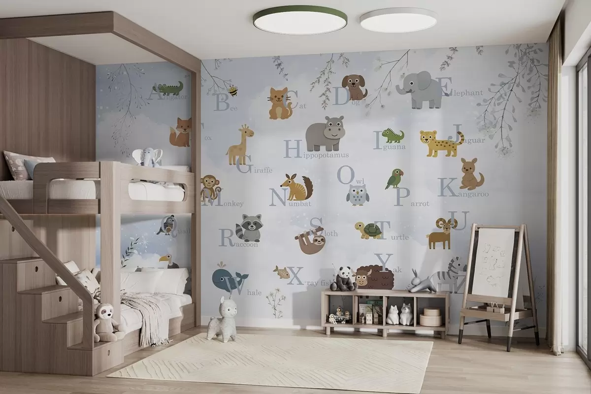 Fototapetai Abėcėlė su mėlynomis raidėmis, augalais ir dangumi Nr. w03809v1