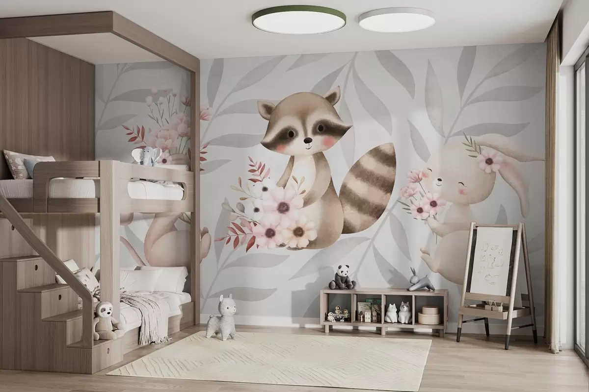 Fototapetai Miško gyvūnai su gėlėmis Nr. w03861
