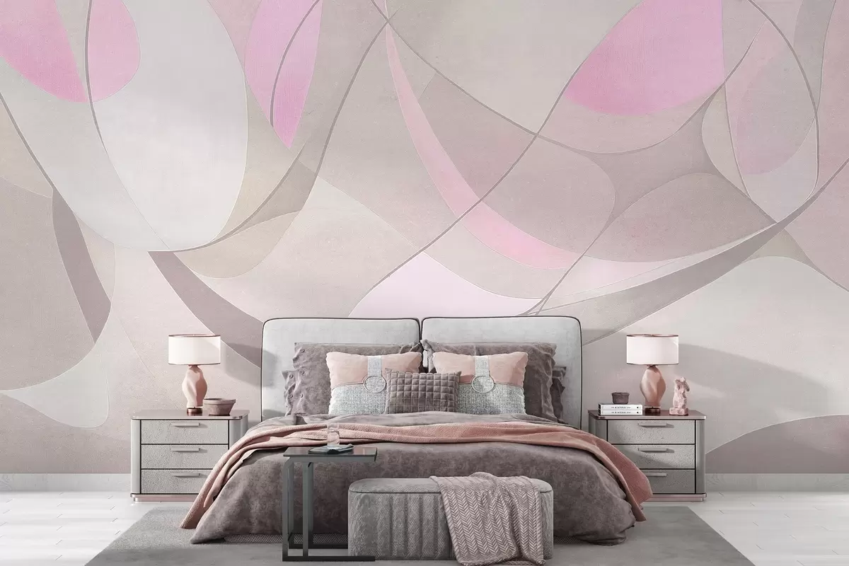 Fototapetai Geometrinė abstrakcija, prislopintos rožinės ir smėlio spalvos Nr. w03878v1
