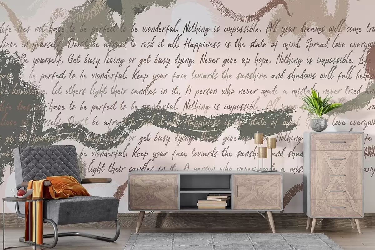 Fototapetai Dizainas su įkvepiančiomis citatomis, abstrakcija, natūraliomis spalvomis Nr. w03909