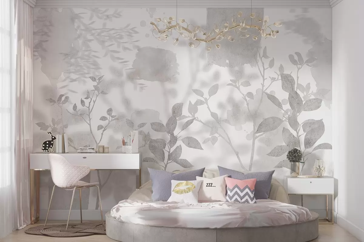 Fototapetai Medžių siluetai, šakos, gamta, akvarelė, pilkos spalvos Nr. w03911