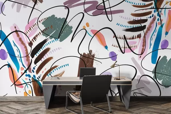 Fototapetai Tušo raidės, kaligrafija, teptuko potėpiai, ryškios spalvos, abstrakcija Nr. w03912