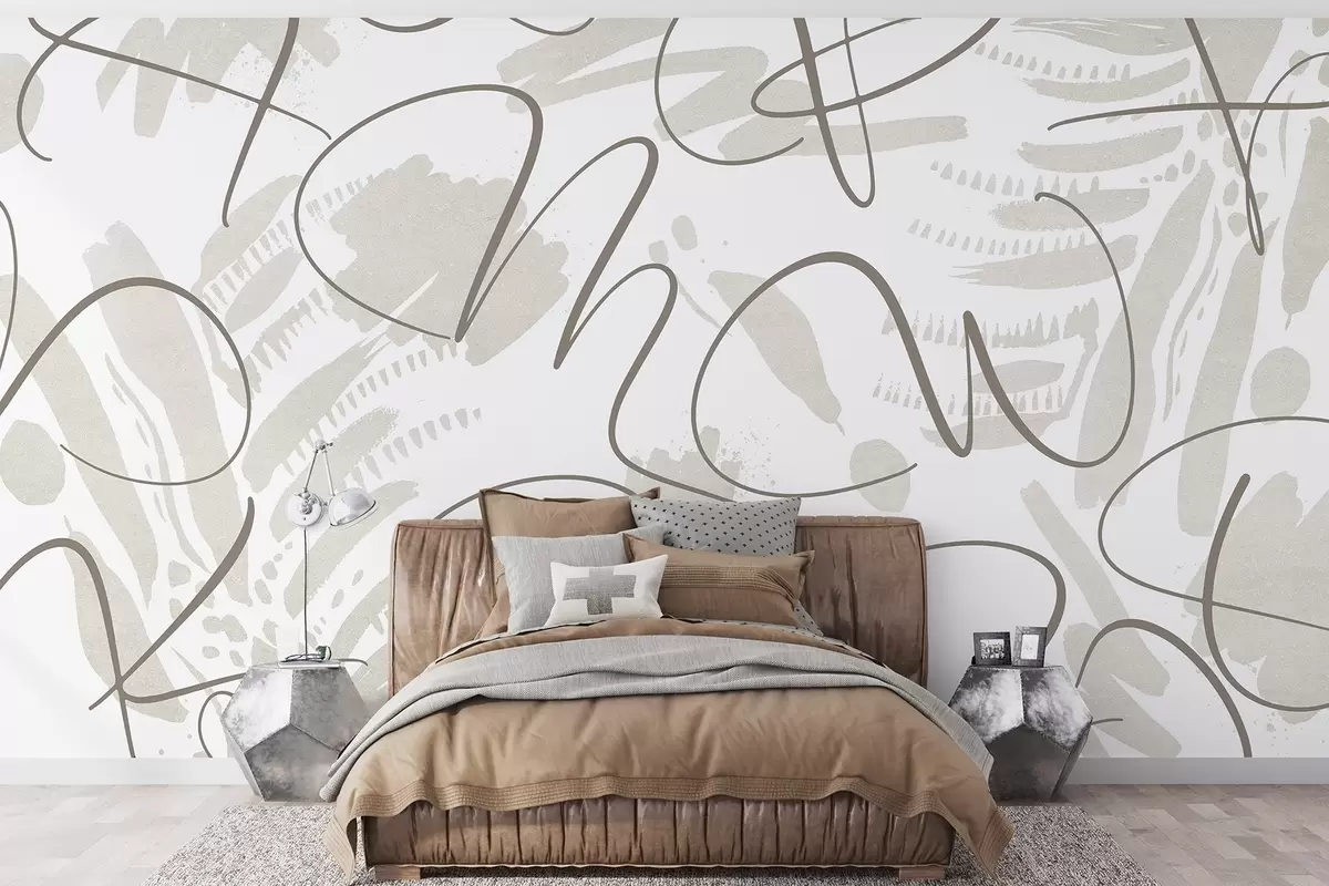 Fototapetai Kaligrafinė abstrakcija su raidėmis, teptuko potėpiais, smėlio spalva Nr. w03913