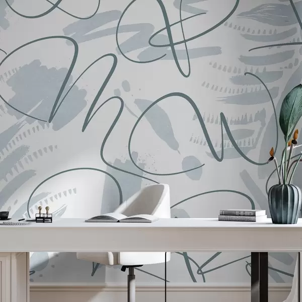 Fototapetai Kaligrafinė abstrakcija su raidėmis, teptuko potėpiais, mėlyna spalva Nr. w03913v1