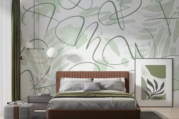 Fototapetai Kaligrafinė abstrakcija su raidėmis, teptuko potėpiais, žalia spalva Nr. w03913v3