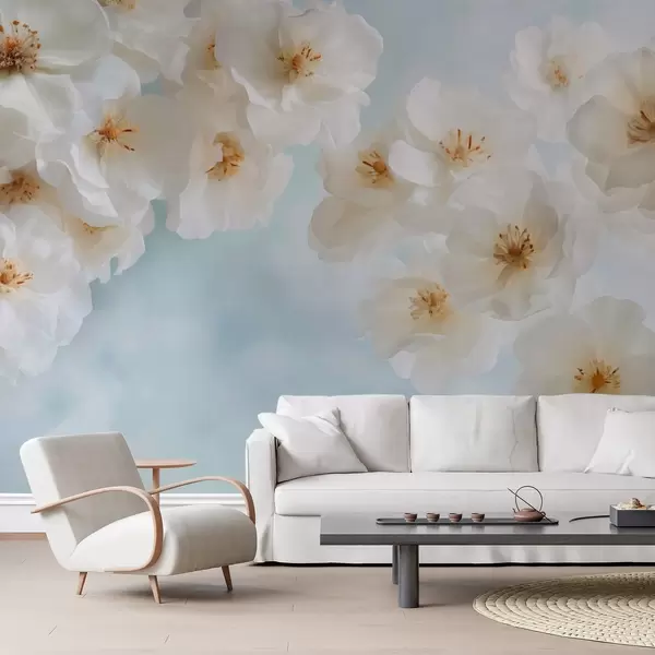 Fototapetai Švelnios didelės gėlės šviesiai mėlyname fone Nr. w03931v1